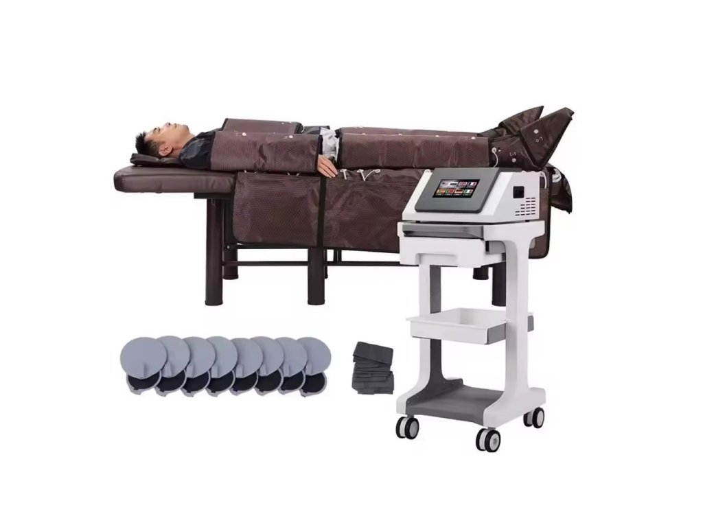 Profesionální lymfodrenážní přístroj 3v1 kombinuje lymfodrenážní masáž, infračervenou saunu a EMS elektrostimulaci pro efektivní formování postavy, detoxikaci a zpevnění pokožky. Nabízí 10 vzduchových komor, 4 automatické režimy a přehledné ovládání. Je vhodný pro domácí i profesionální použití a pomáhá při celulitidě, otocích či únavě nohou. Infrateplo prohřívá tkáně a podporuje spalování tuků, zatímco EMS aktivuje svalová vlákna. Přístroj splňuje bezpečnostní normy EU a je vyroben z kvalitních, pokožce šetrných materiálů.