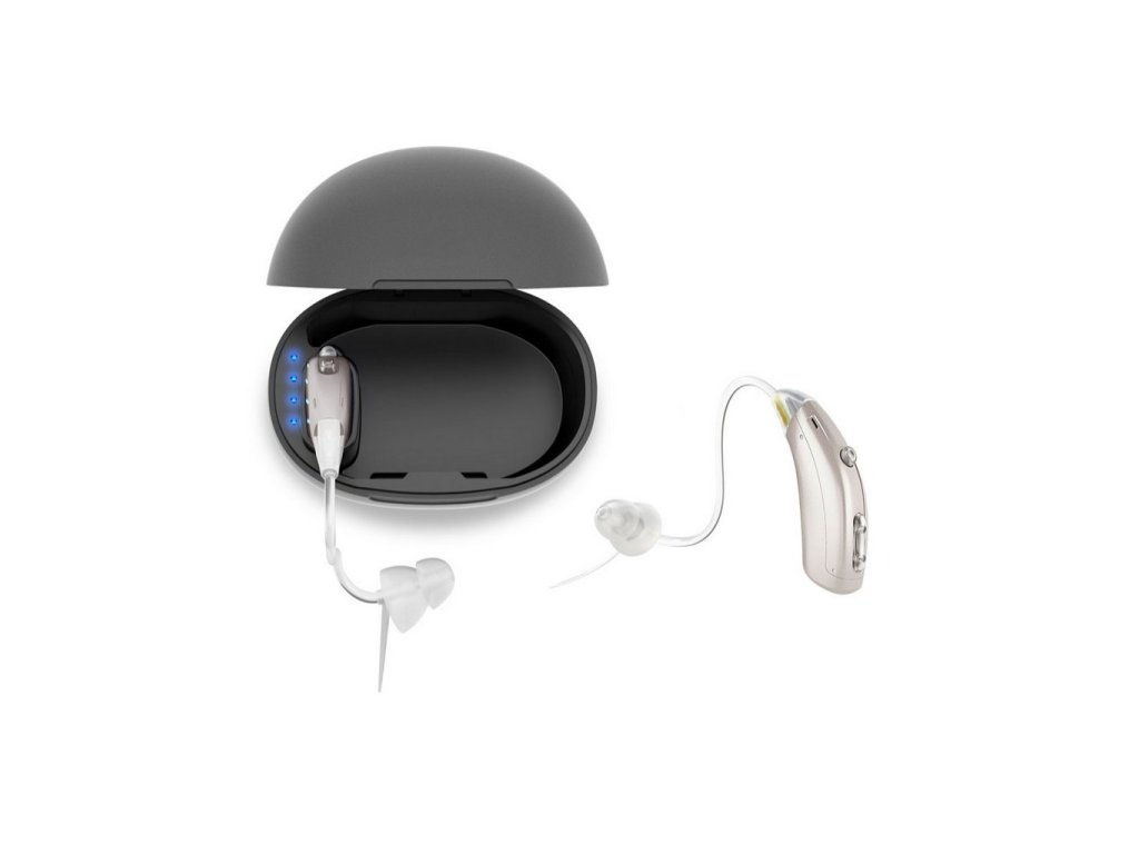 - Ochranné a nabíjecí pouzdro, ve kterém můžete naslouchátko skladovat a nabíjet