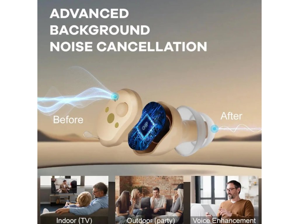 - 🧠 Pokročilý digitální čip – poskytuje ostrý, čistý a přirozený přenos zvuku pro komfortní poslech v každé situaci