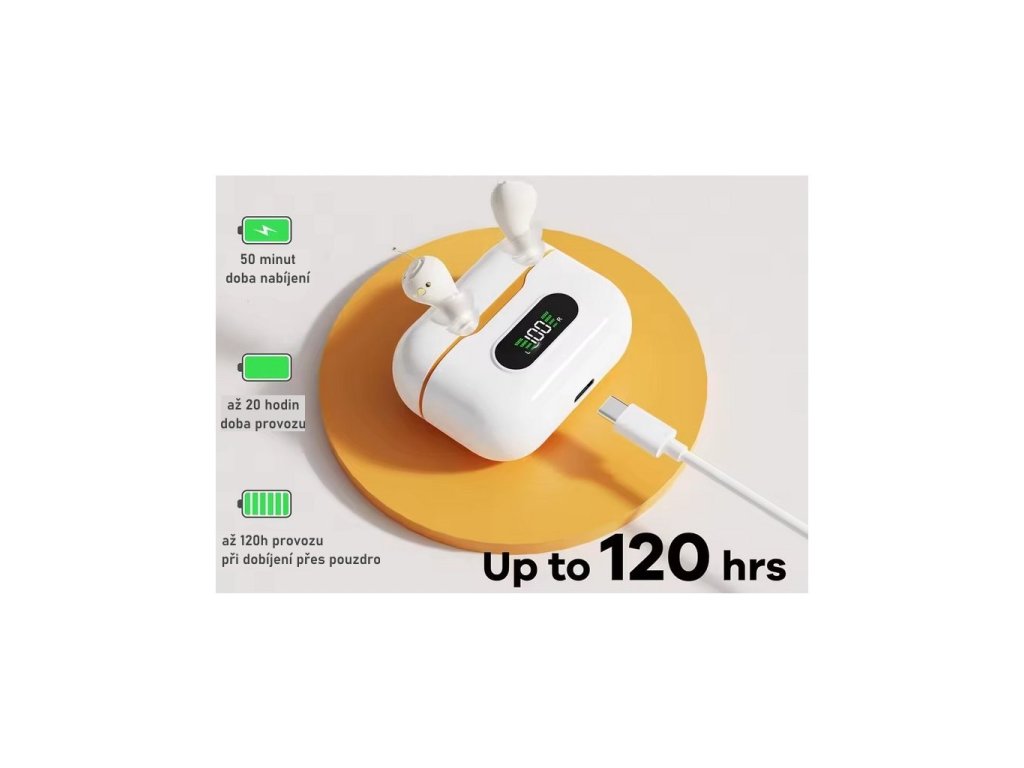 - 🔋 Dobíjecí baterie a pouzdro – vestavěné baterie s dlouhou výdrží a praktické nabíjecí pouzdro, které umožňuje opakované nabití bez připojení ke kabelu – až 120 hodin provozu