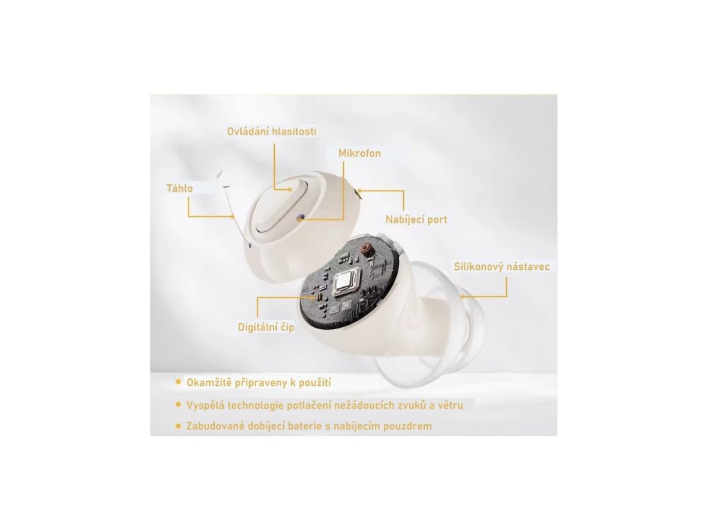 - Pár digitálních ušních naslouchátek HearIQ v barvě slonové kosti (pravé a levé)
